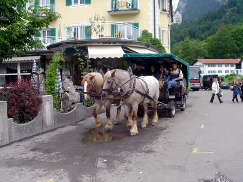 雨や寒い日には、アルプゼー湖畔から霧が立ち込めるためノイシュヴァンシュタイン城をスッキリと見れる日は少ないようです。でも逆にそれが幻想的風景を作り上げ観光客を引きつけるのかも知れません。我々が訪れたときも雨が降って城も霞んでいましたが、だんだん天気が良くなるにつれてはっきりと見れました。
