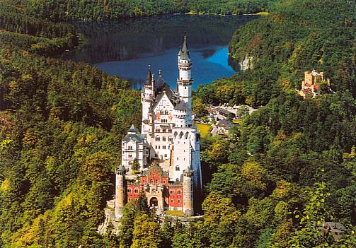 こちらは正面から見たノンシュヴァンシュタイン城です。誰かがおとぎの国の城を語るなら「それはノイシュヴァンシュタイン城でしょう!」と言ったくらい1869から1886年までかけて築かれたこの城の目を瞠るその美しさ、息を呑む室内装飾は世界で類を見ず、何百万人もの訪問者をひきつけています。